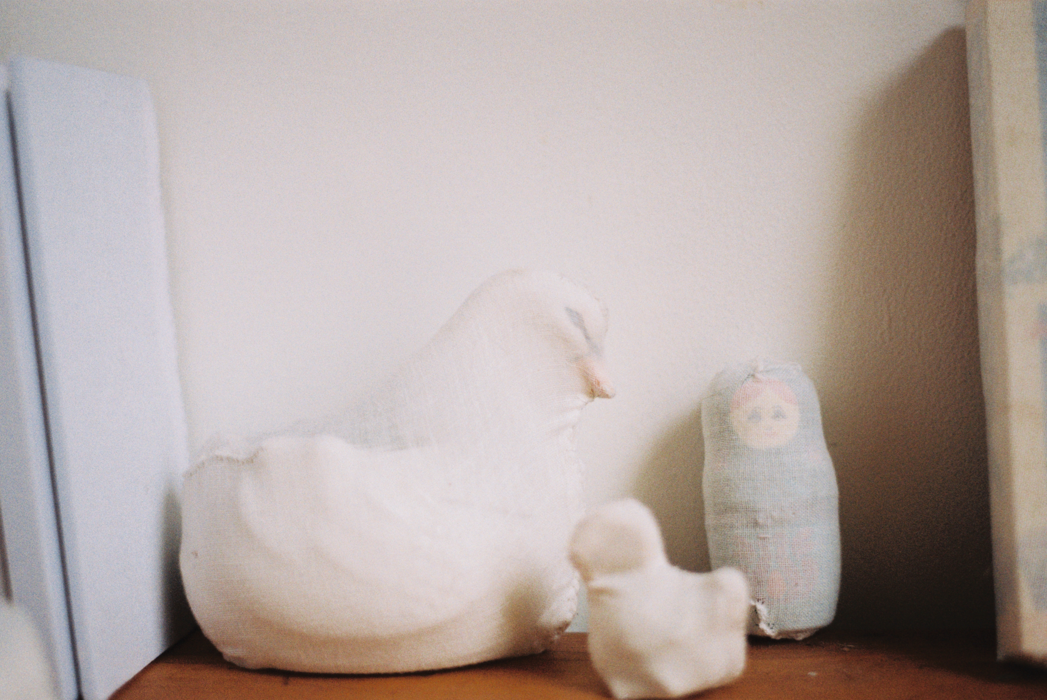 No longer in use, they became ornaments, each one a capsule of the time I devoted to covering it. The outcome of the piece allows for an alien reality inside the space of a bedroom, a sense of a world in limbo.